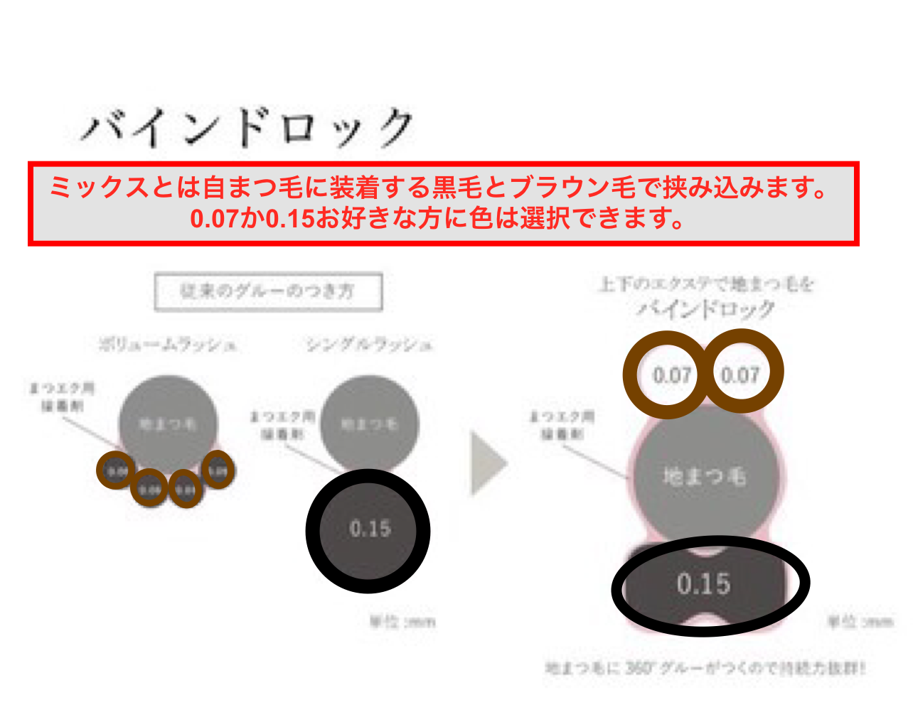 ※ブラウンミックスとは1本の自まつ毛に黒とブランを装着します。