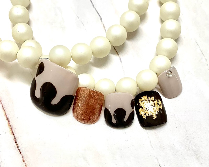 ①グラデーション✖pearlネックレス ころっとした球体のpearlが本物の真珠みたいでかわいいです。カラーは人気の新色#181です。