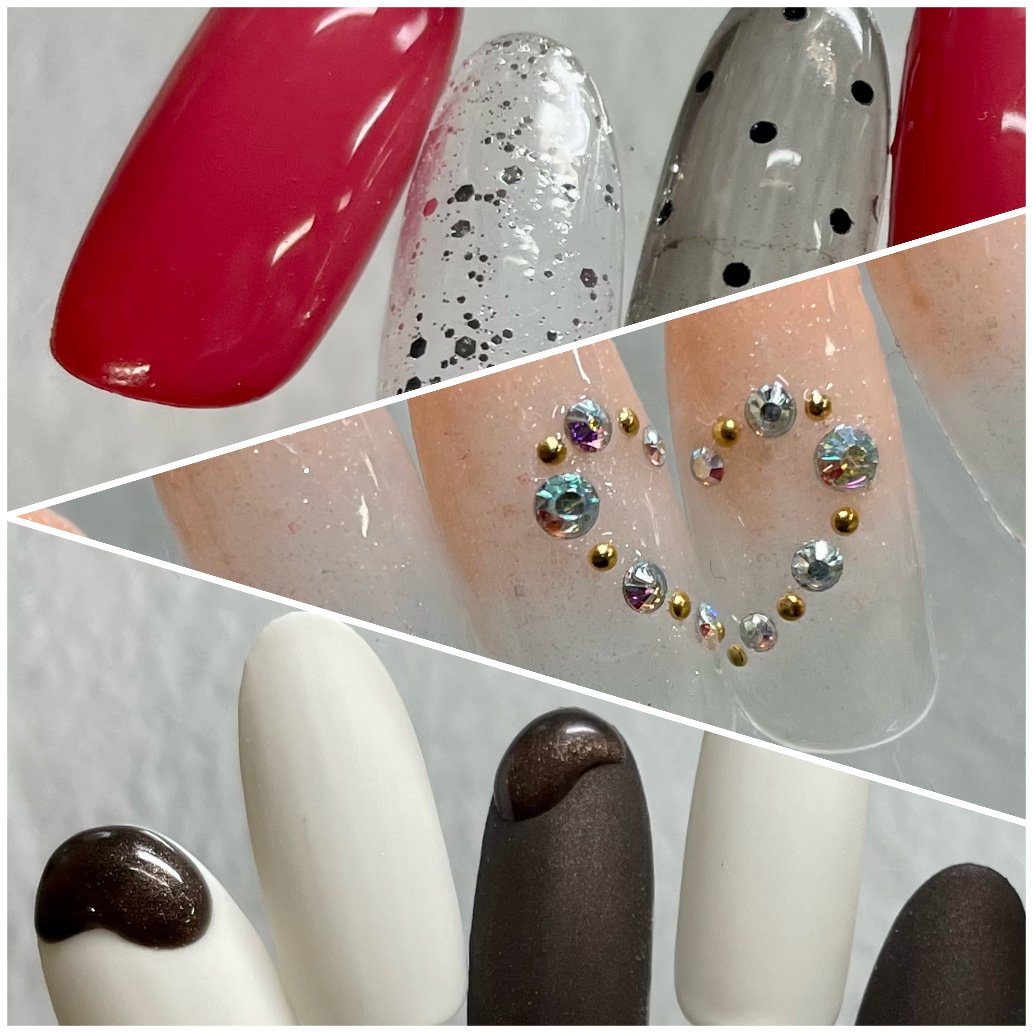 ①シアーレッド✖♡ホロ オフィスサンプルコースにお揃いのデザインございます。シアーブラックやホワイトでもかわいいと思います。