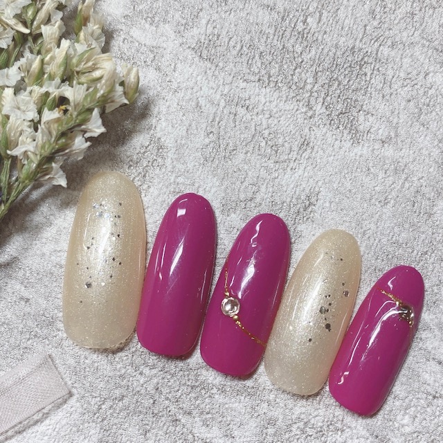 夏を残しつつストーンやパーツで綺麗めに°˖✧