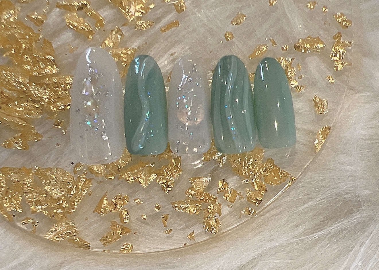〇マーブルデザインで大人っぽいニュアンスネイルになります!