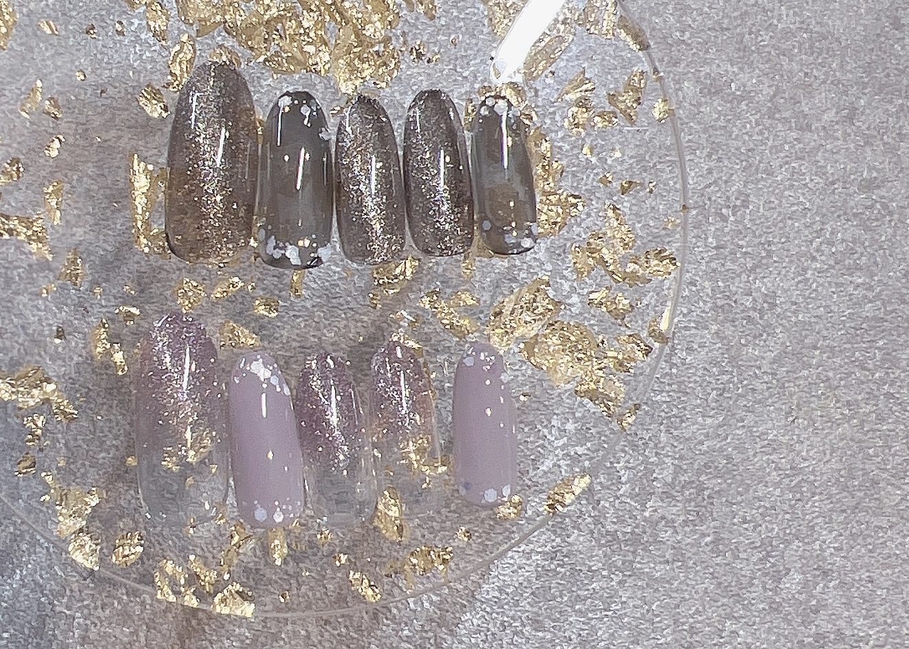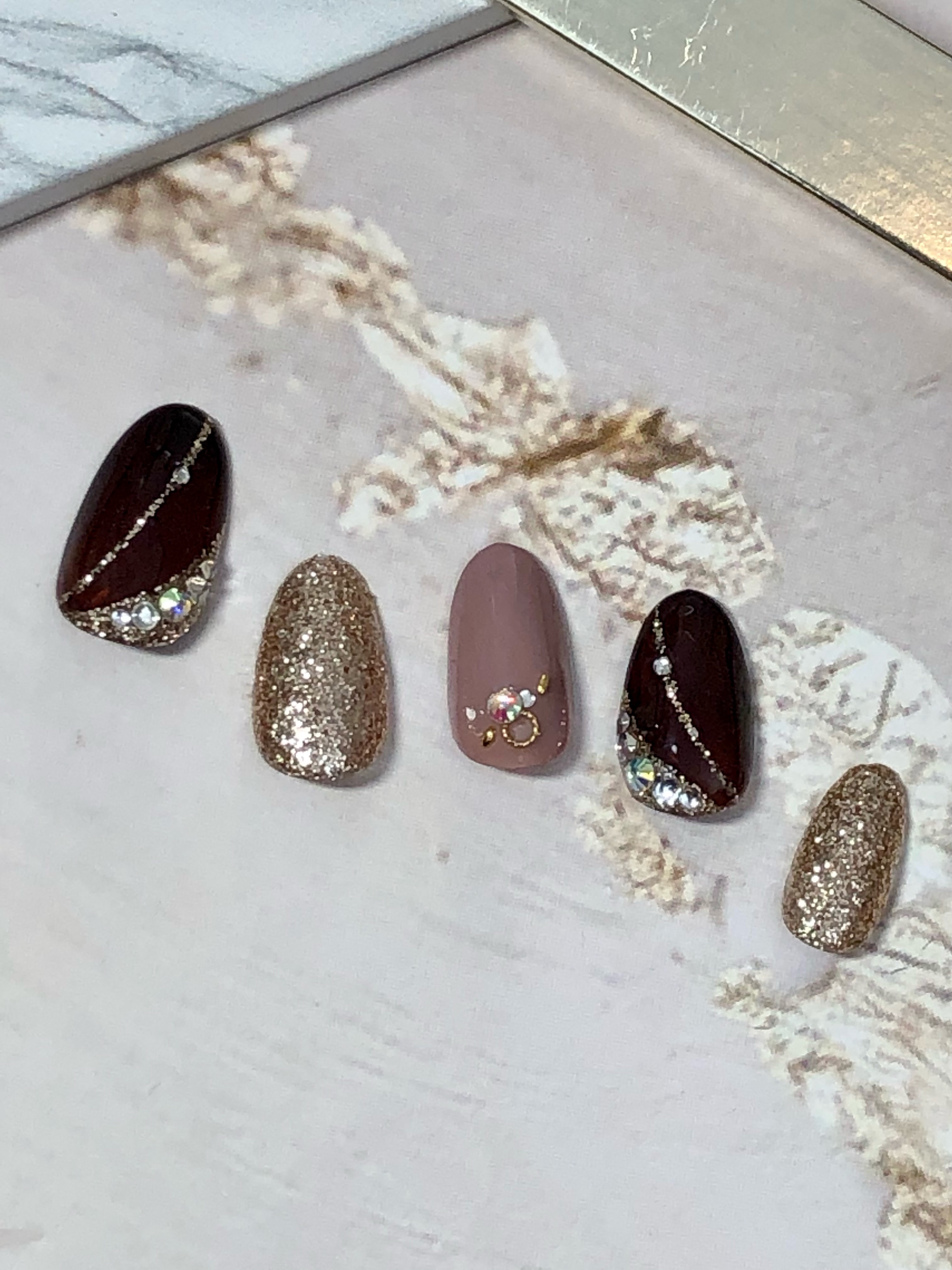 〇キラキラのラメフレークとエスニック風なアートが