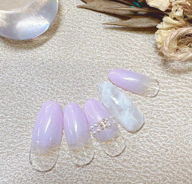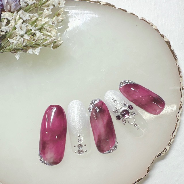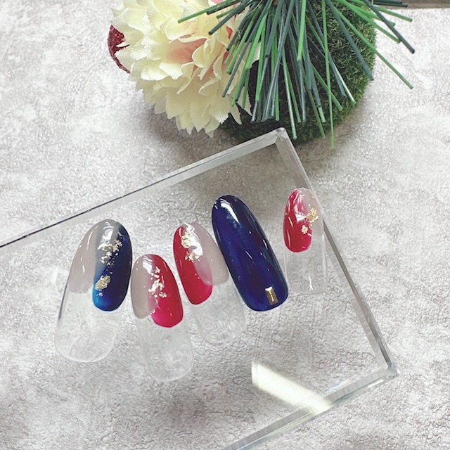 1月らしい色合いの塗りかけネイル!
