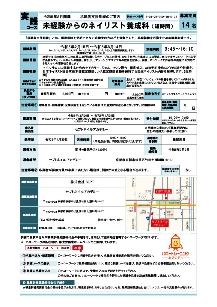 入学希望者は最寄りのハローワークへご相談ください。