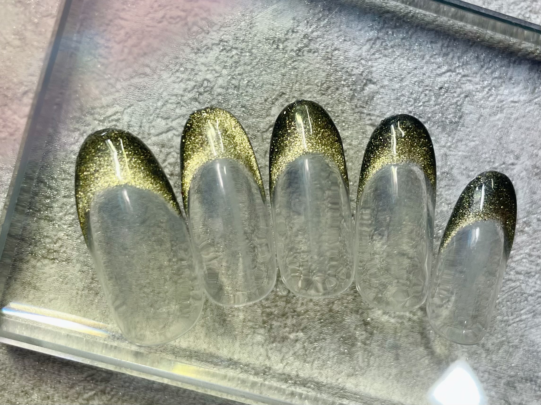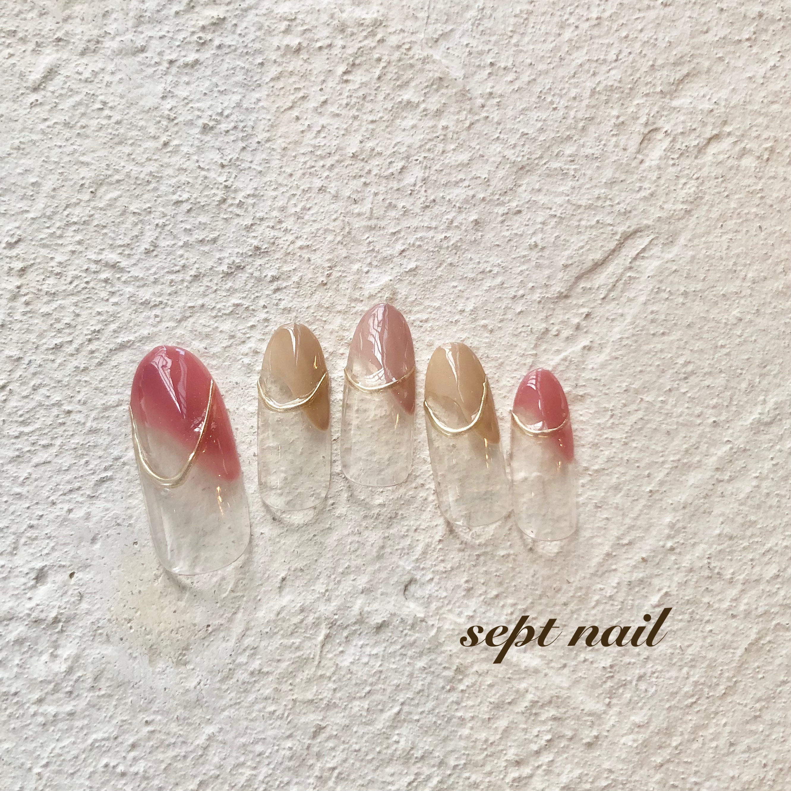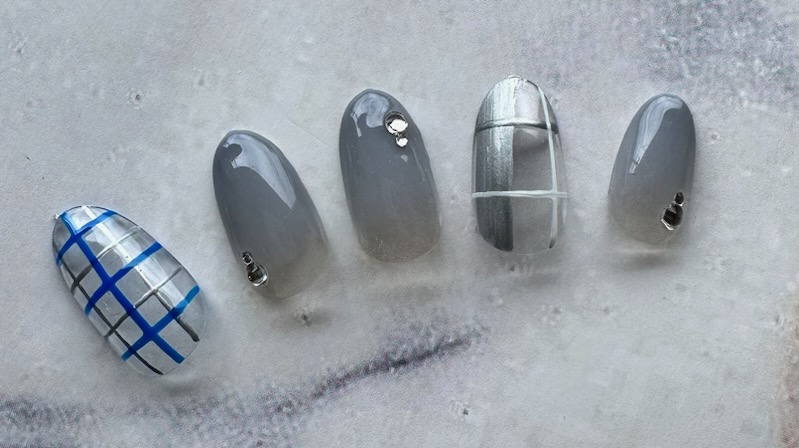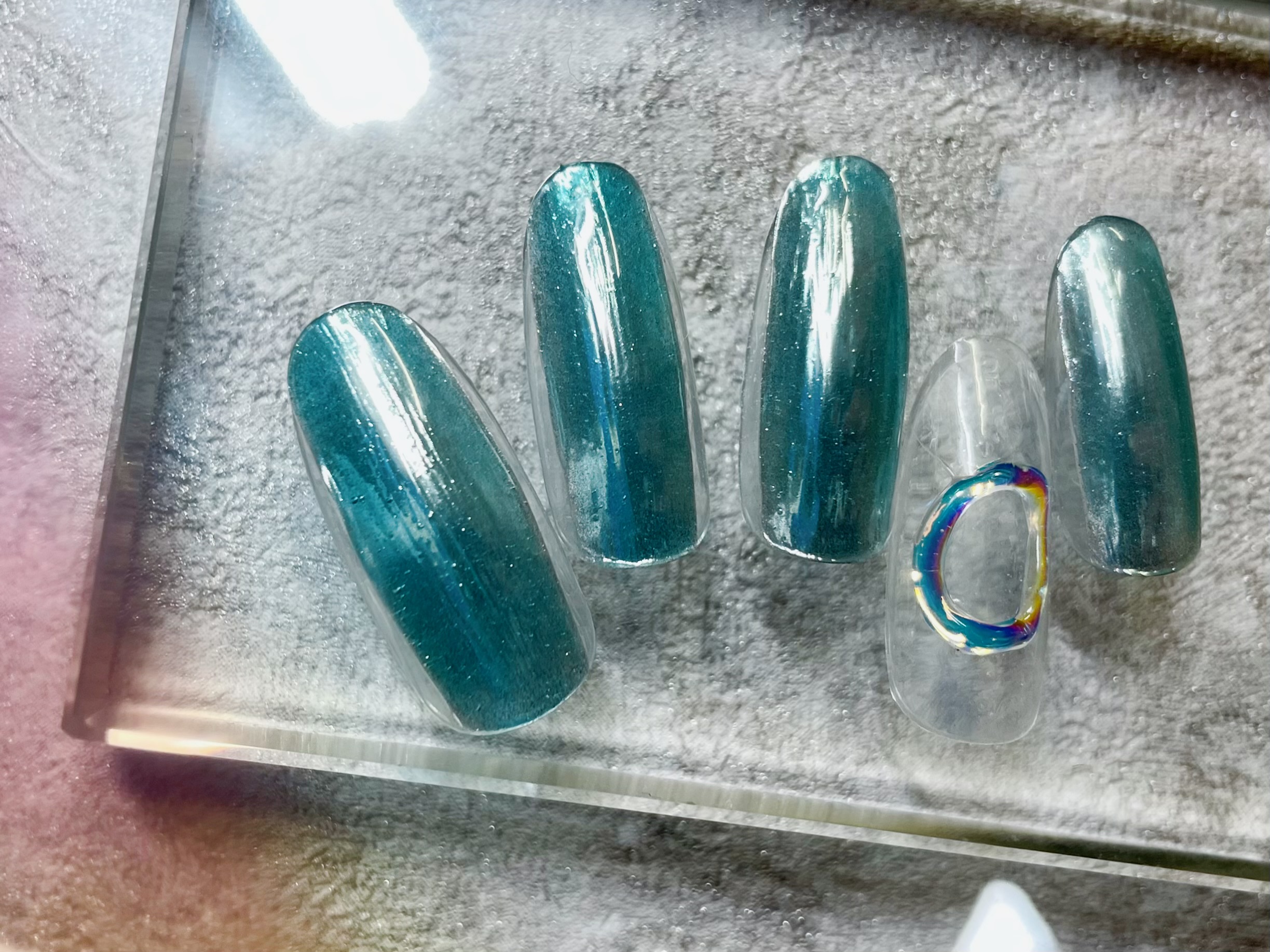 夏らしい配色でも、パキッとしすぎないニュアンスネイル。クリアカラーをメインに、ニュアンス部分にはシルバーを仕込んであります✨