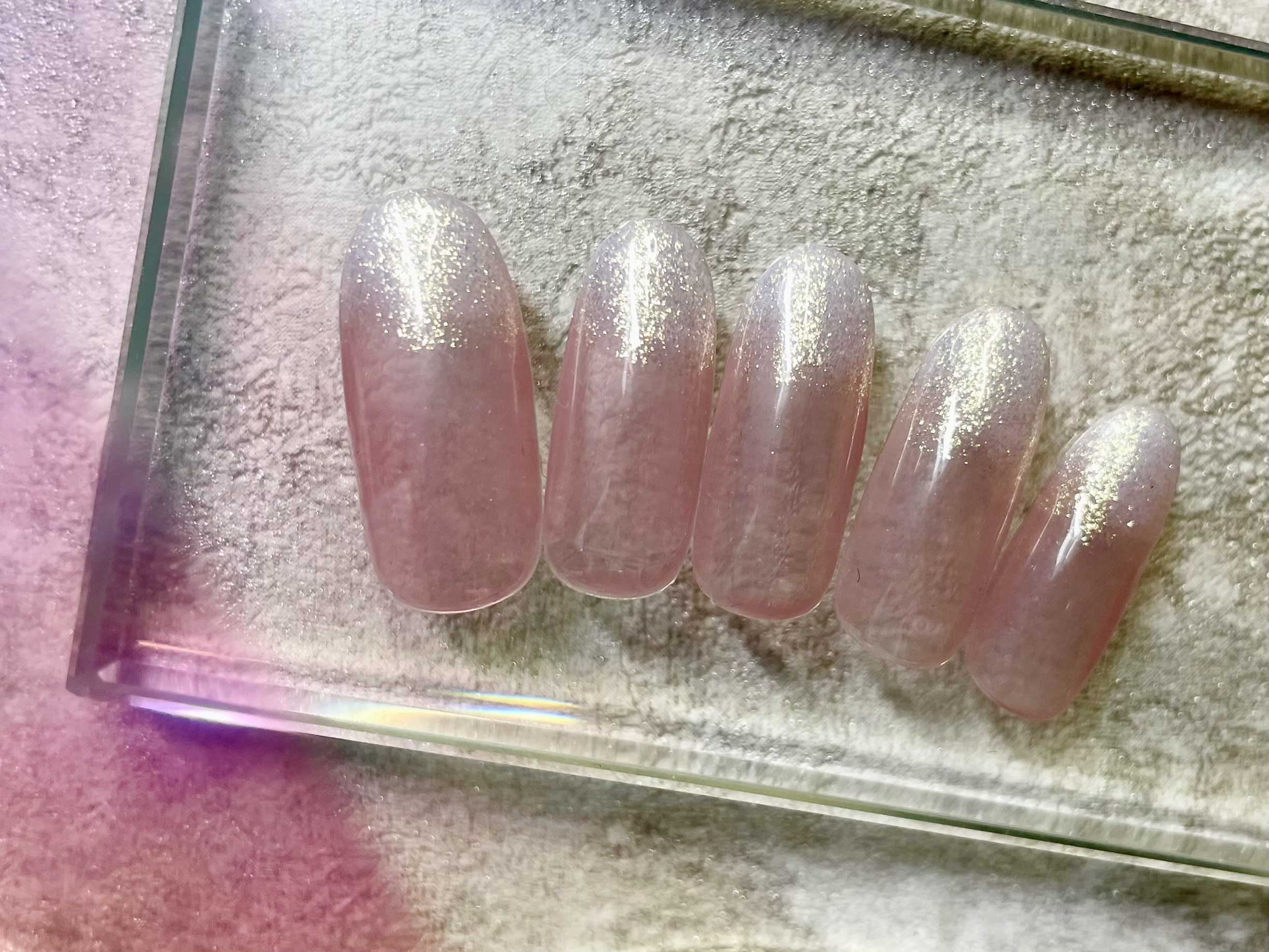 お肌に馴染む血色カラーをベースに、先端はうっすらホワイト&キラキラをON!