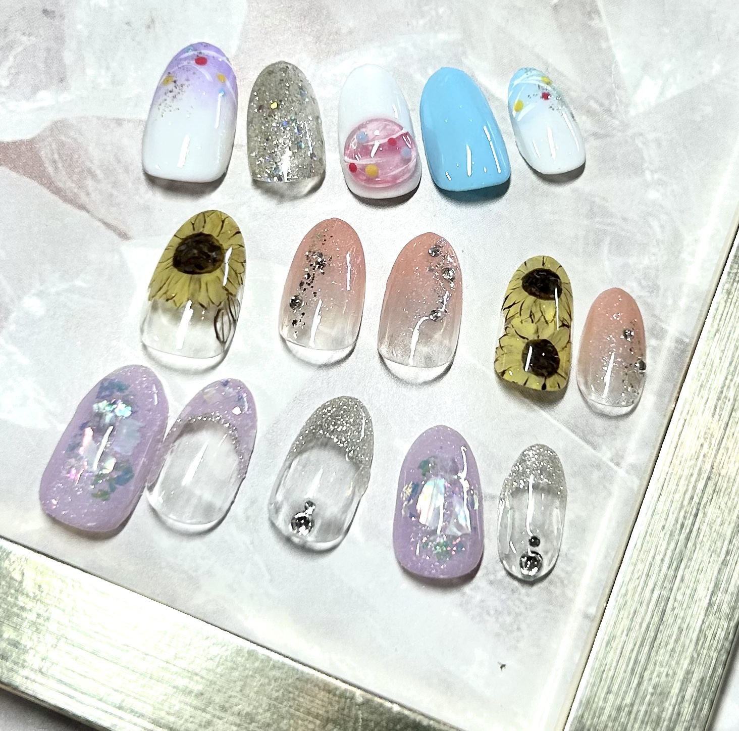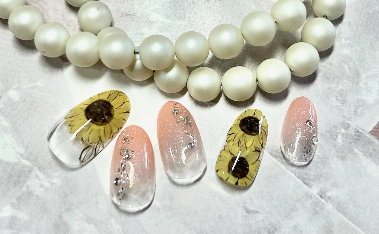 夏といえばひまわりですよね🌻ほんのりラメをのせているのでキラキラとかわいいです✨