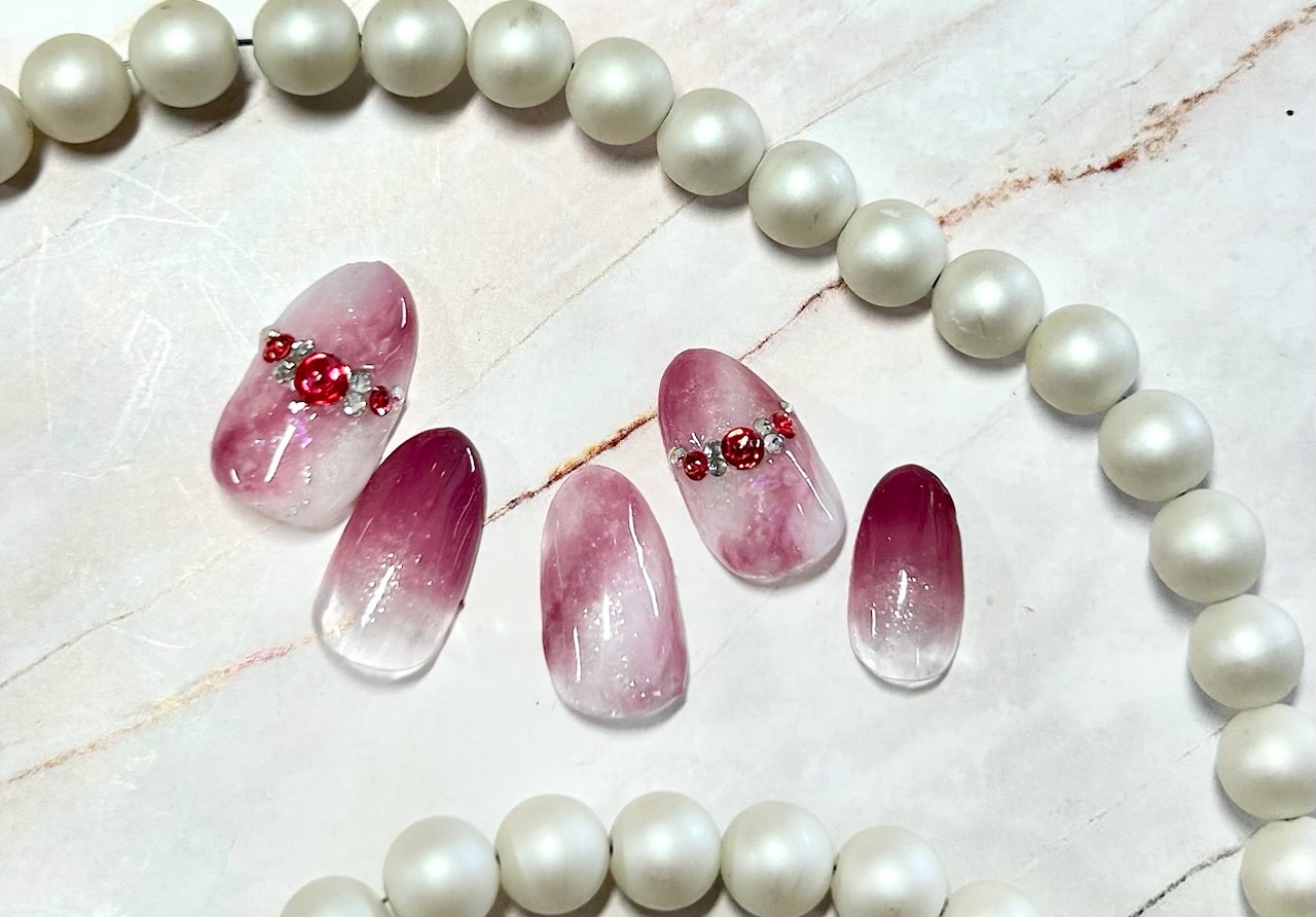 赤にゴールドラメが映えます✨白×赤のニュアンスはいちごミルクみたいでかわいいです♪