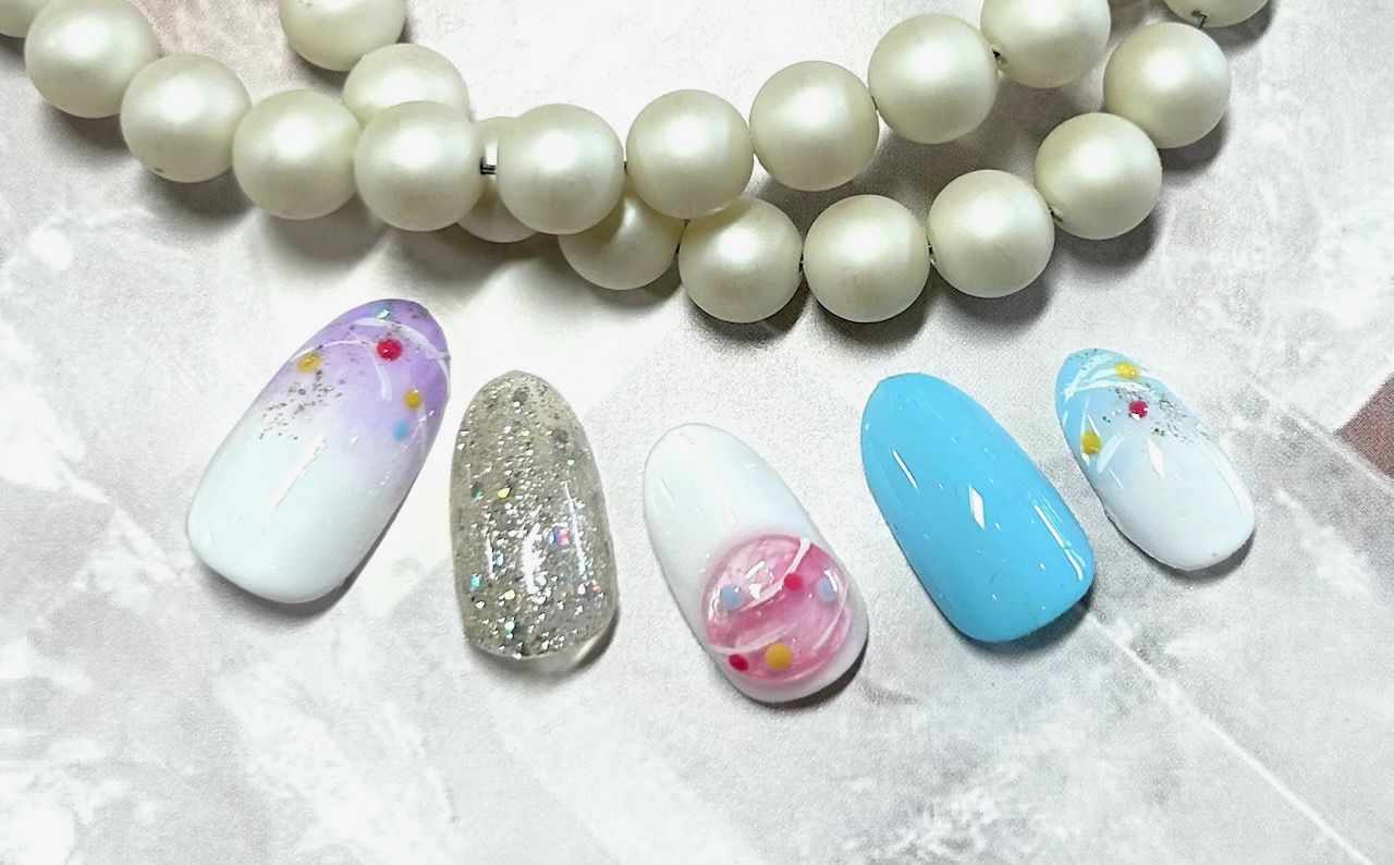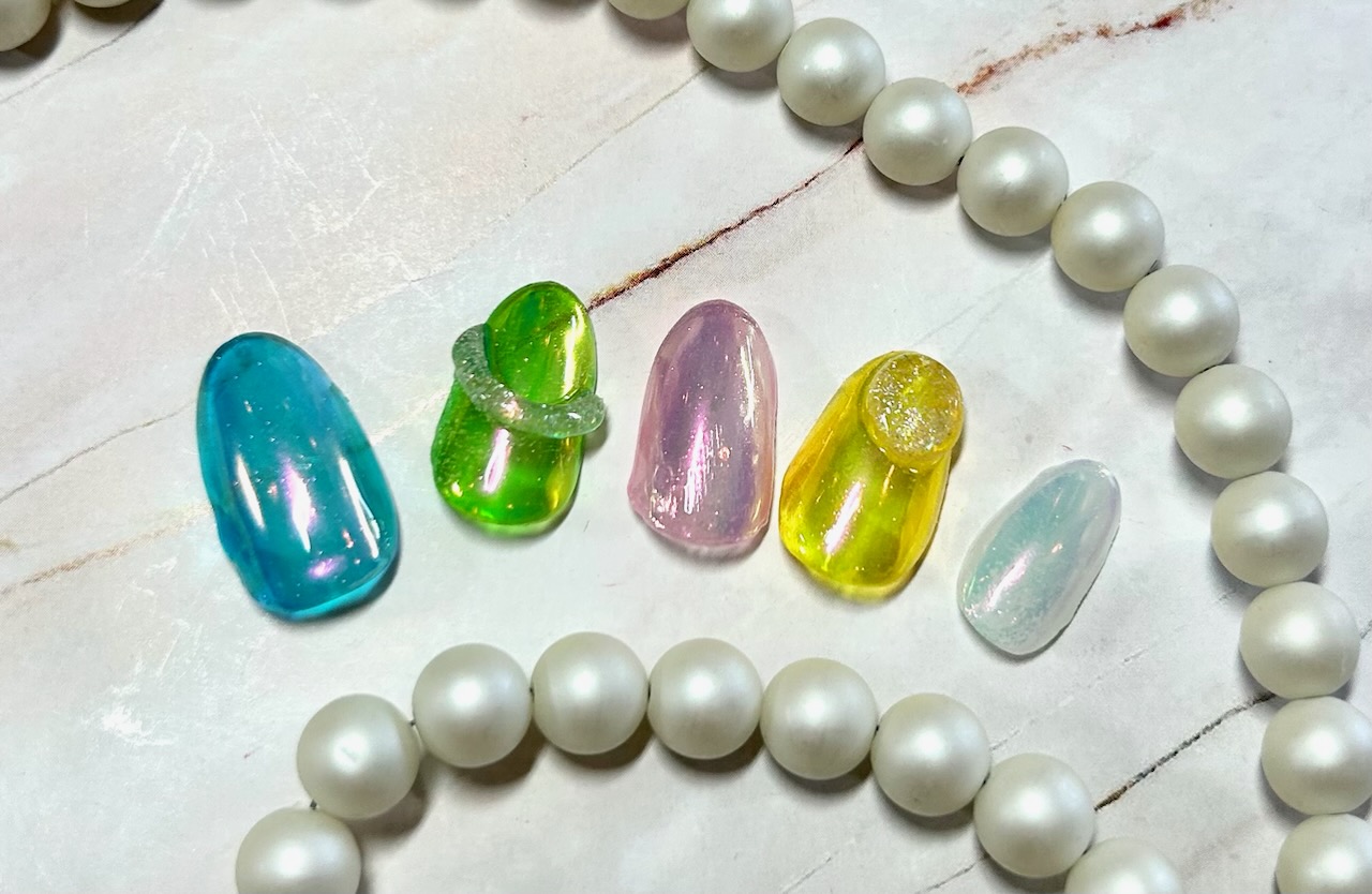 いま流行りのネイルデザインです💅ポップな色味とかわいいお顔に元気がでます✨