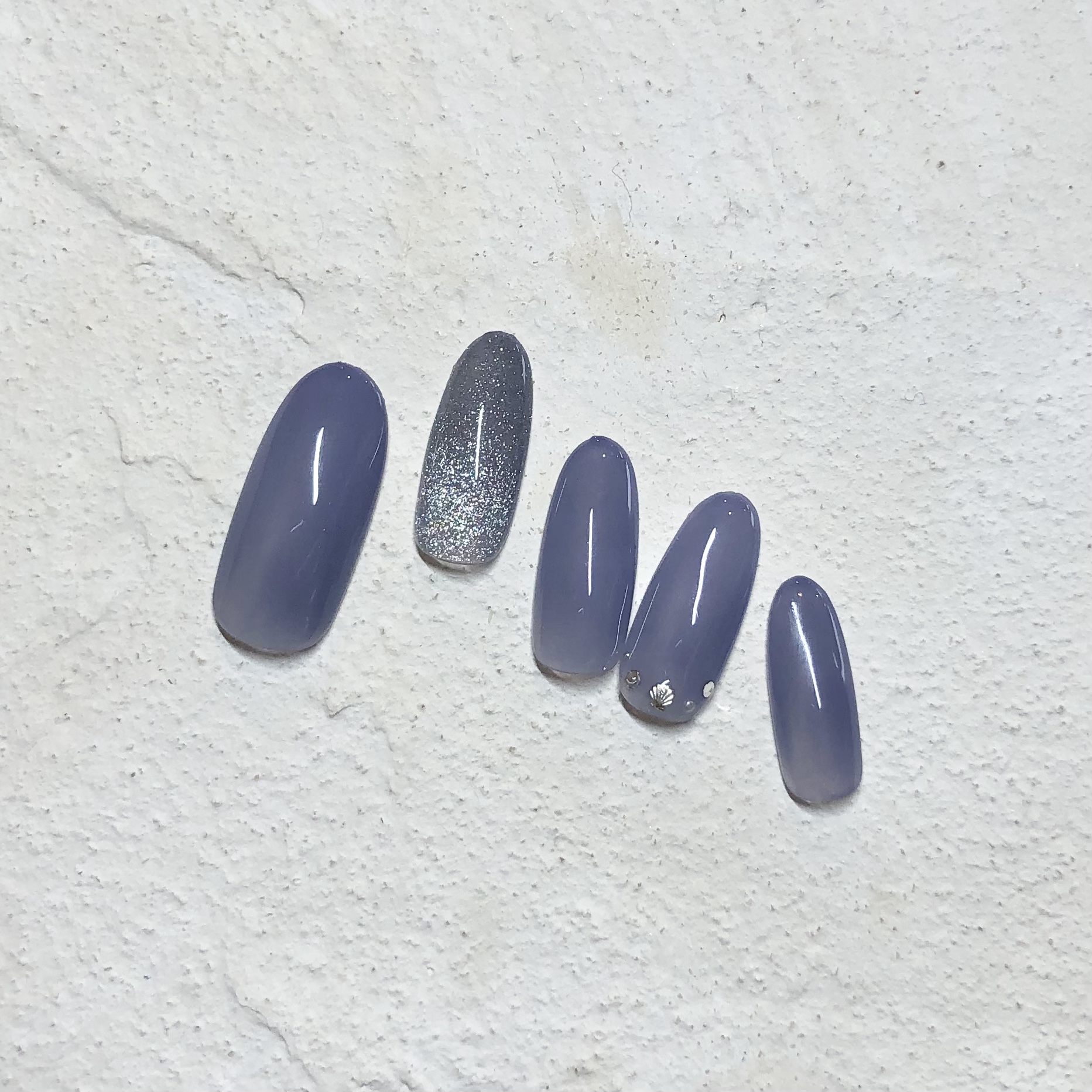 中指と薬指に違う質感のラメを使うことよって抜け感のあるデザインになっています!ブルー×シルバーで涼しげのあるネイルです💅
