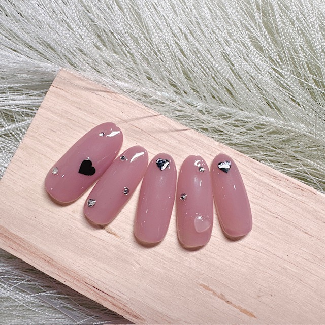 落ち着いたカラーですが、ほんのりシアー感もあり夏にもピッタリです!シルバーのハートがポイントです💗