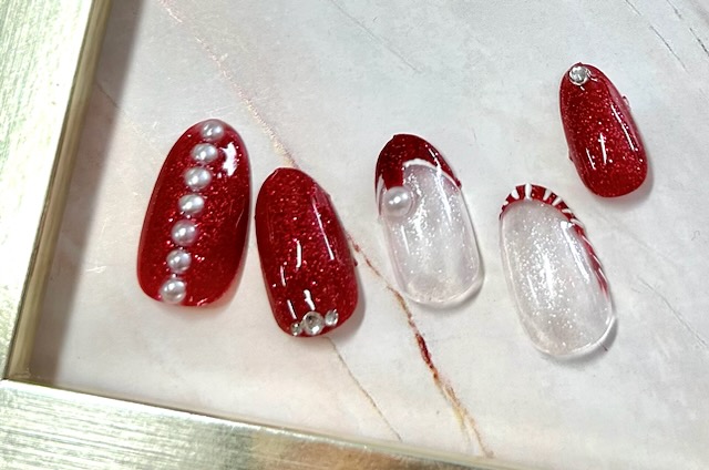 カラーを自分色に変えて素敵なXmasネイルをお楽しみください。