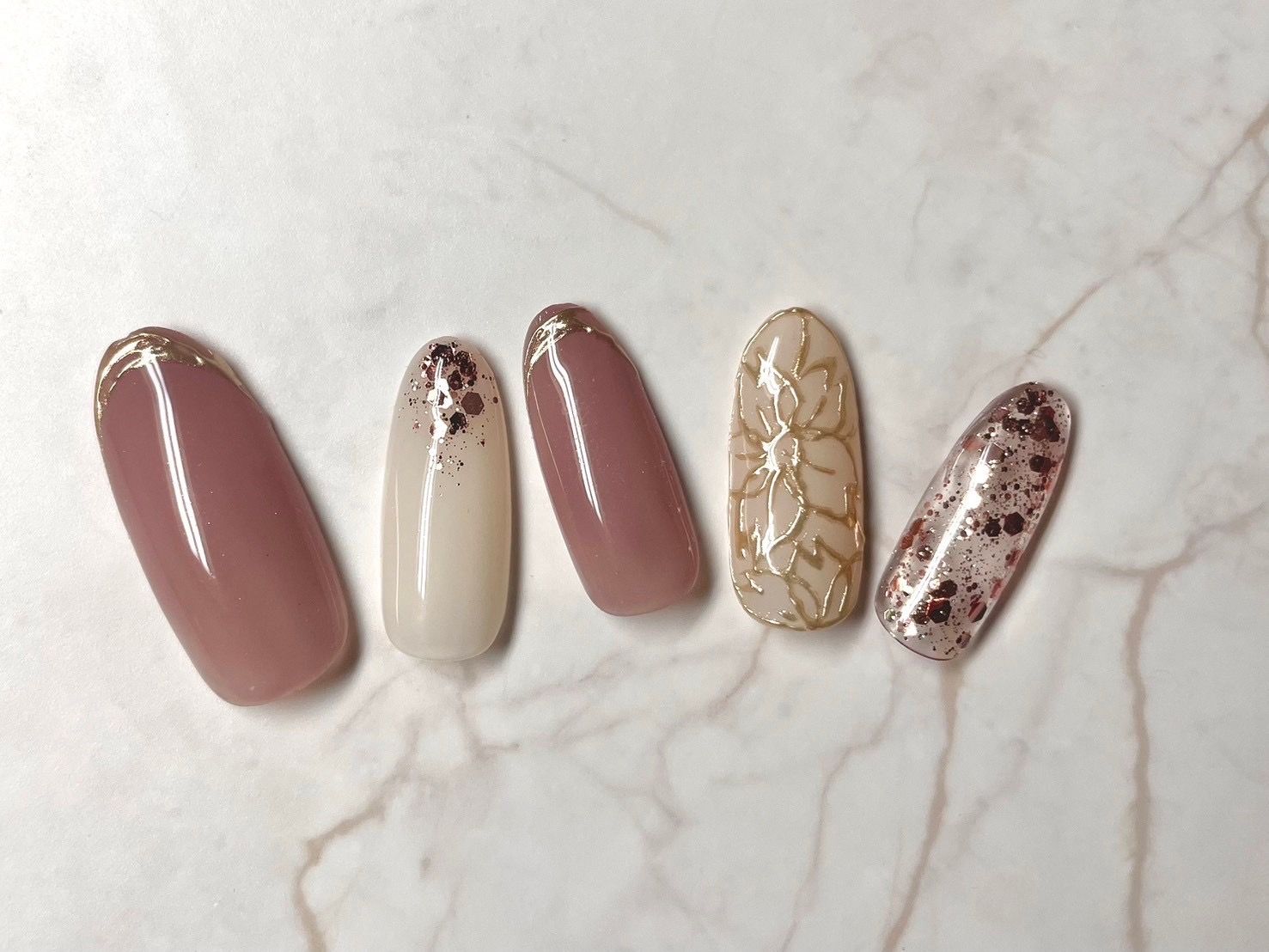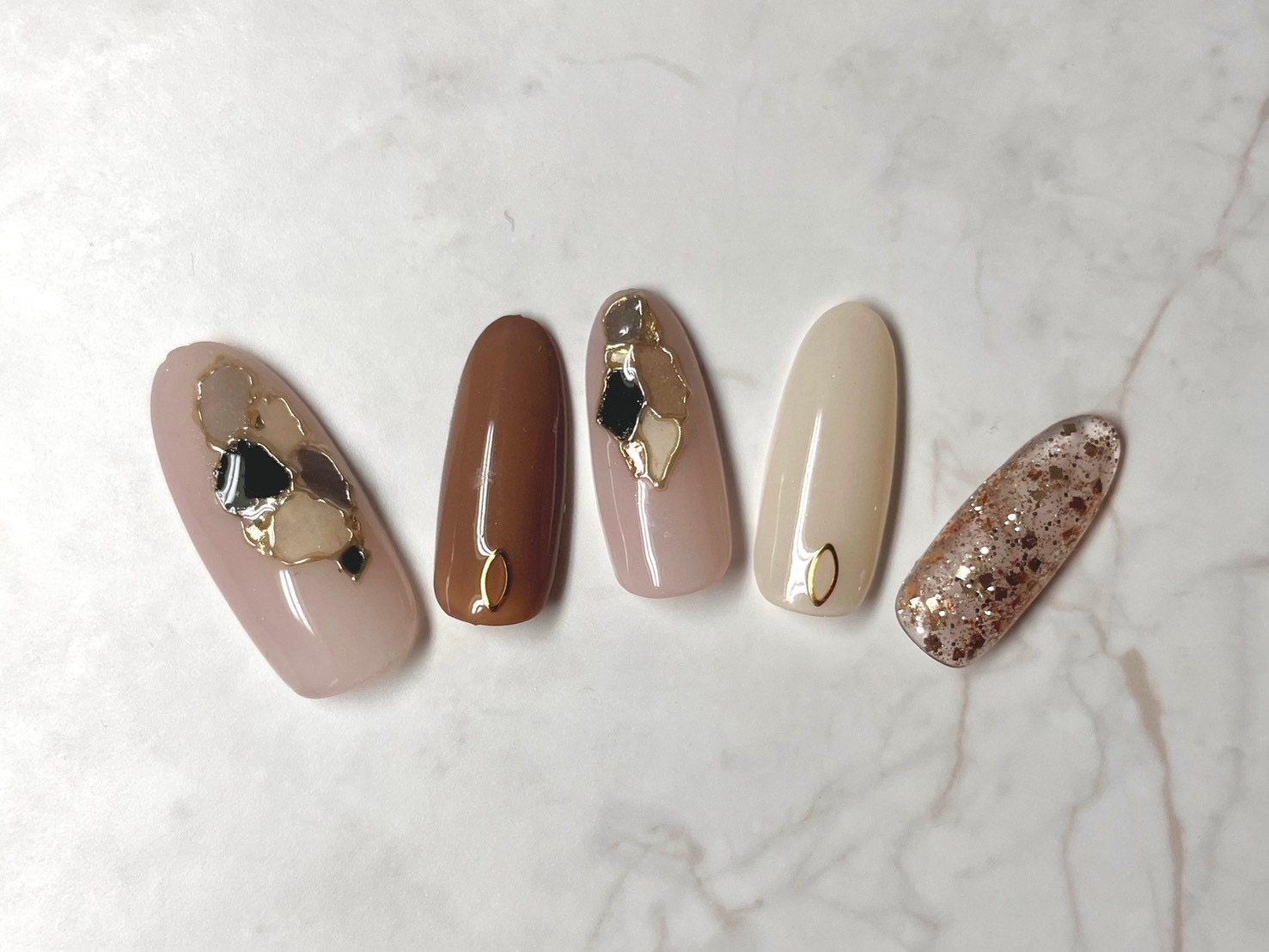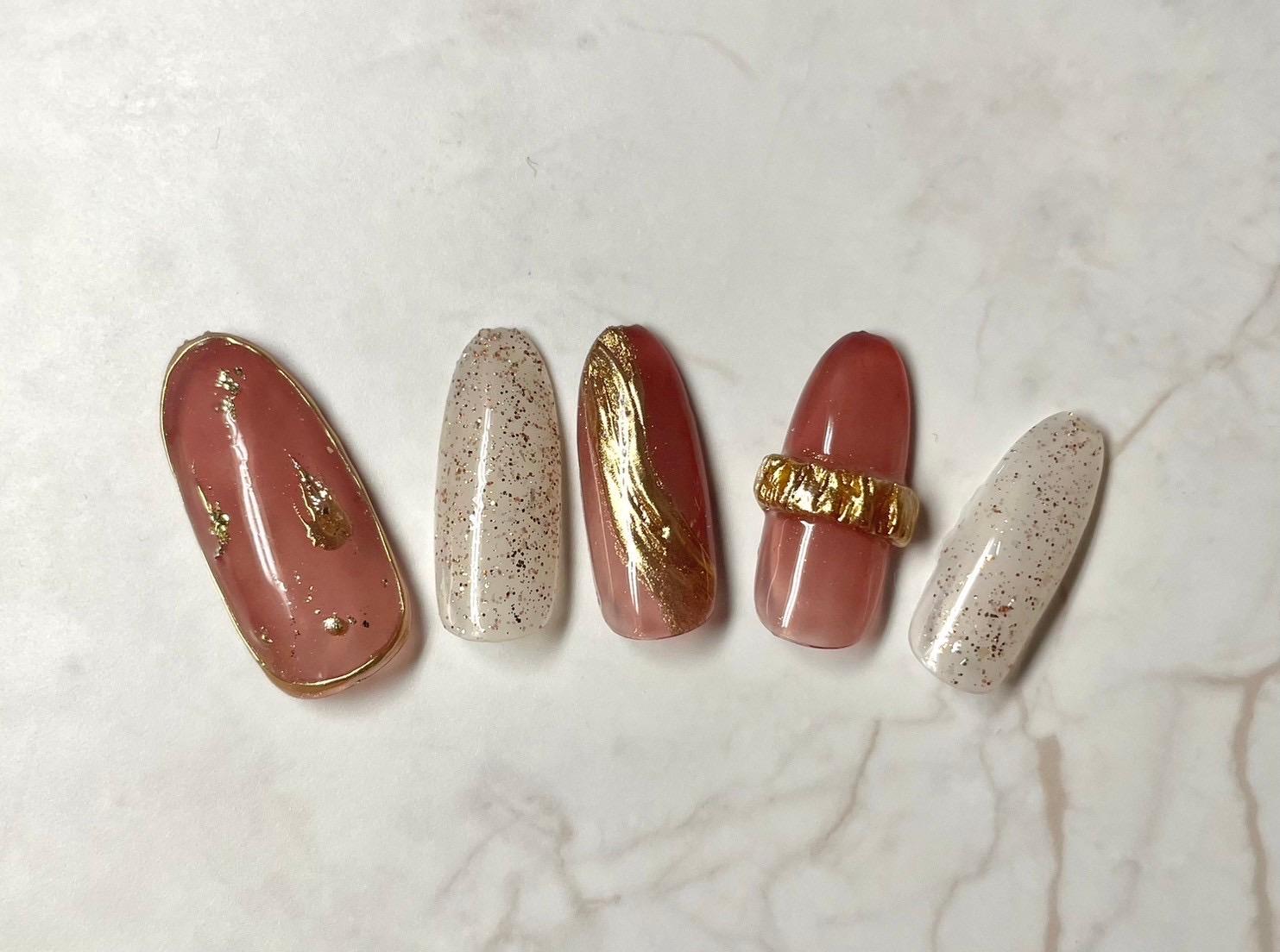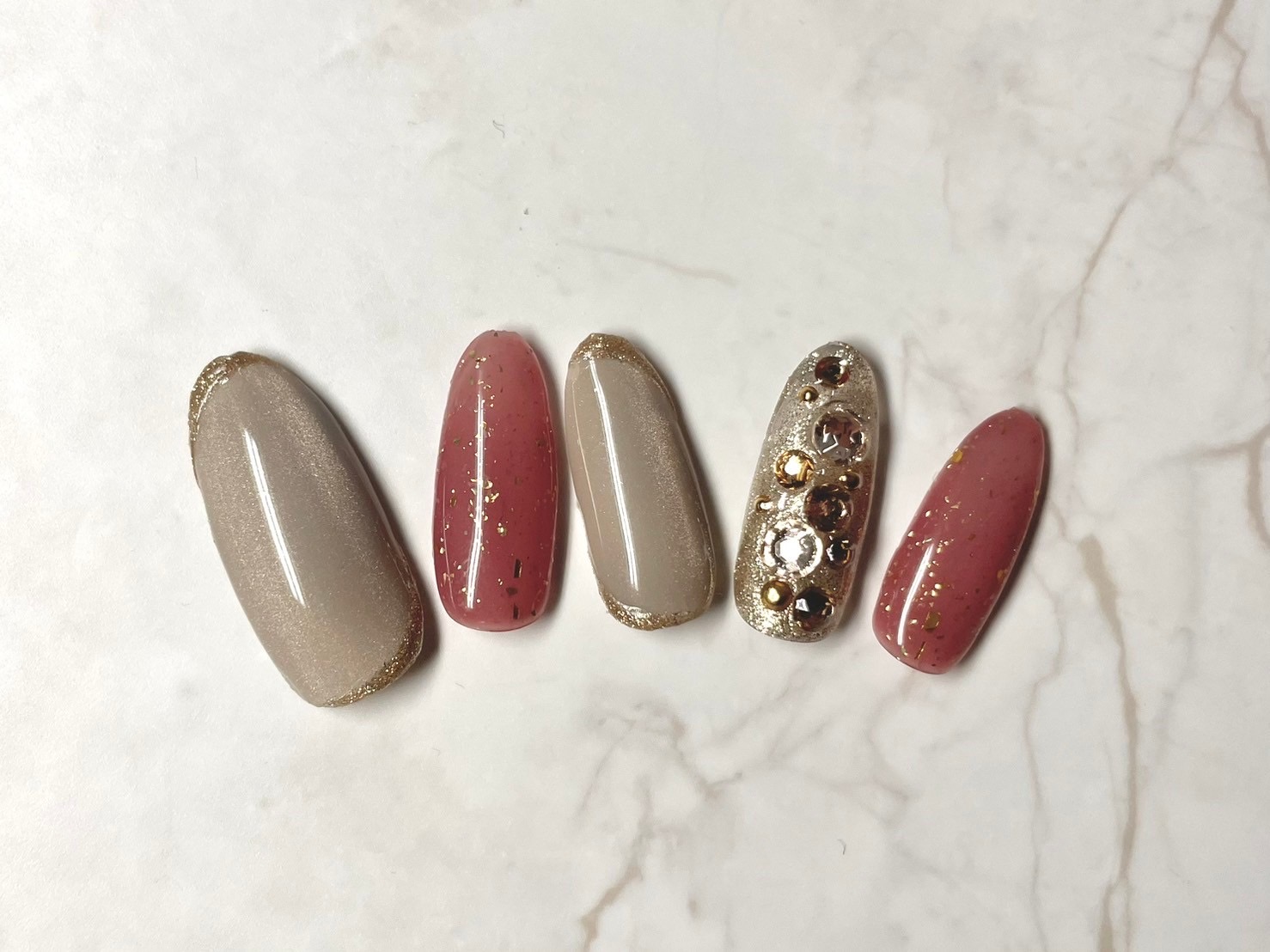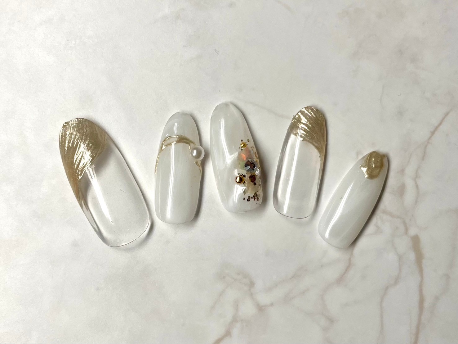 もやもやフレンチ風のカラーの上には金箔をのせて。