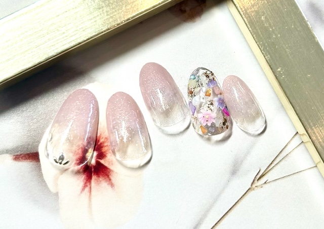 さりげなくラメと花びらのフレークをプラス♪