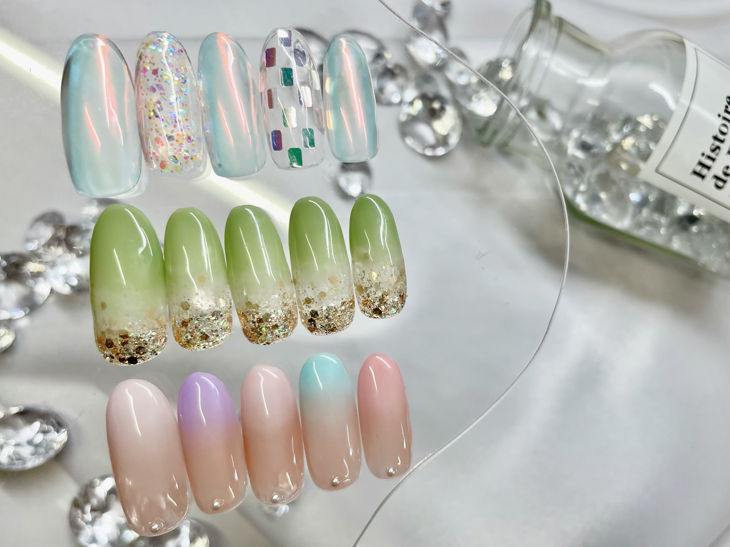 小ぶりなストーンとホロでキラッと彩り♪