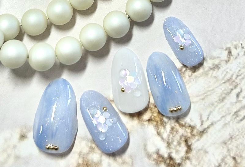 ①クリアブルー×ホロネイル✨️