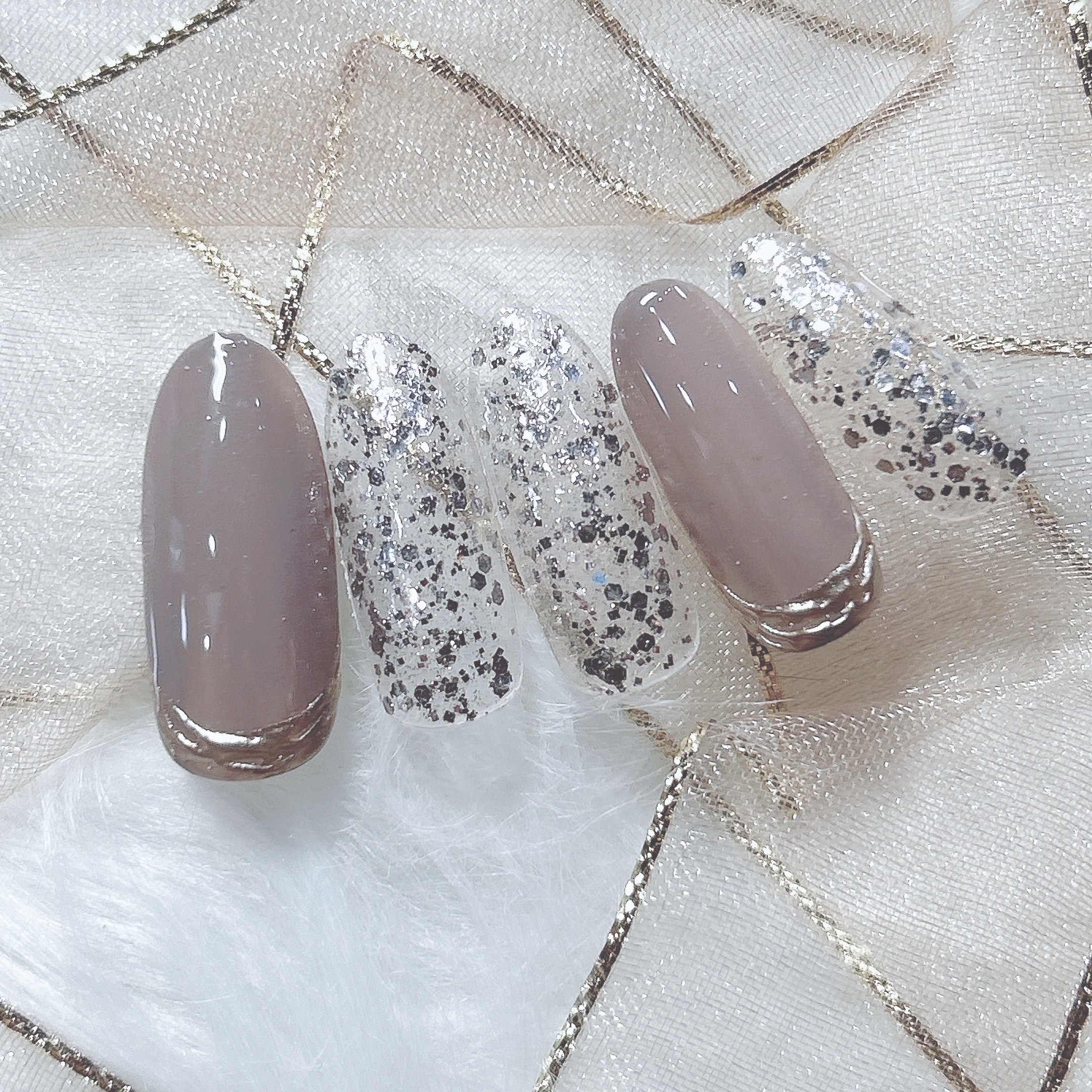 ➂ミラーライン×ラメ