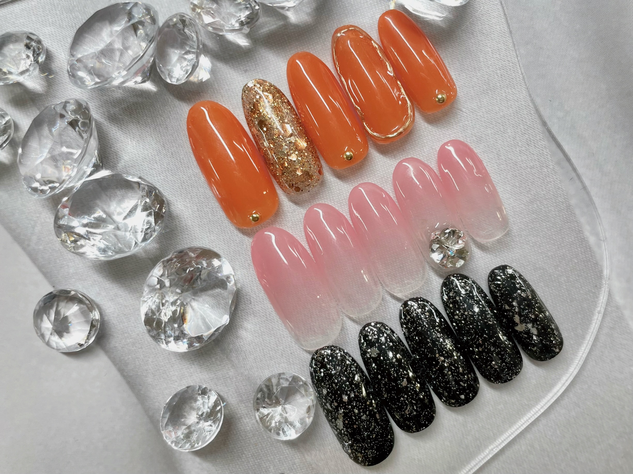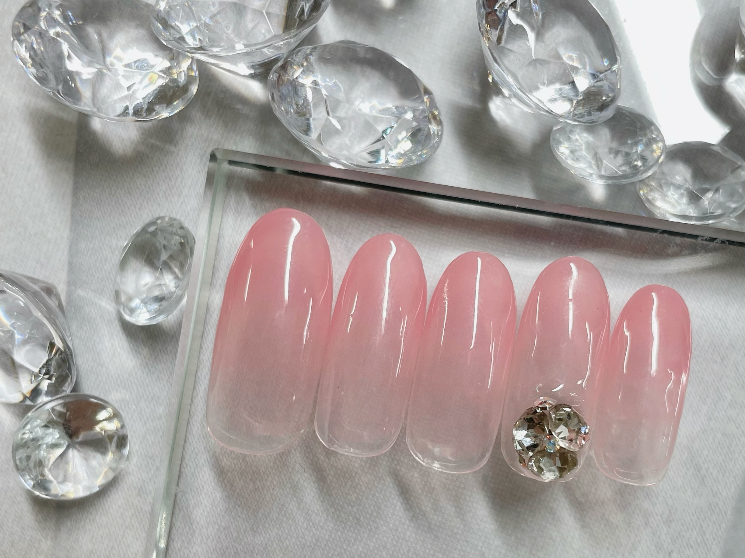 ②グラデーションに、大きめVカットストーン♪