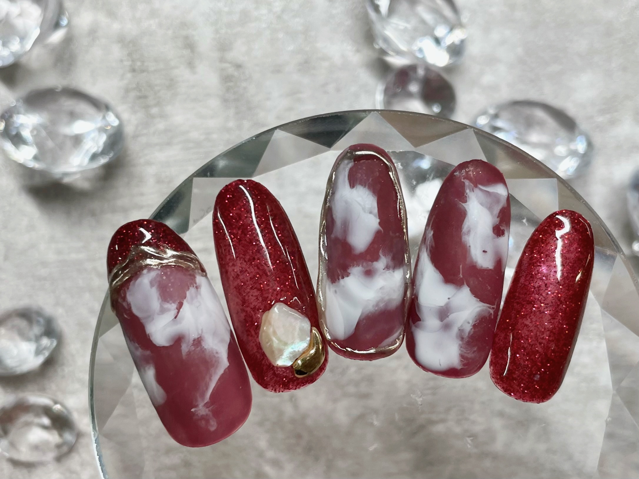 ③くっきりマーブル!ベースはカラーとラメのお色を統一するのが◎