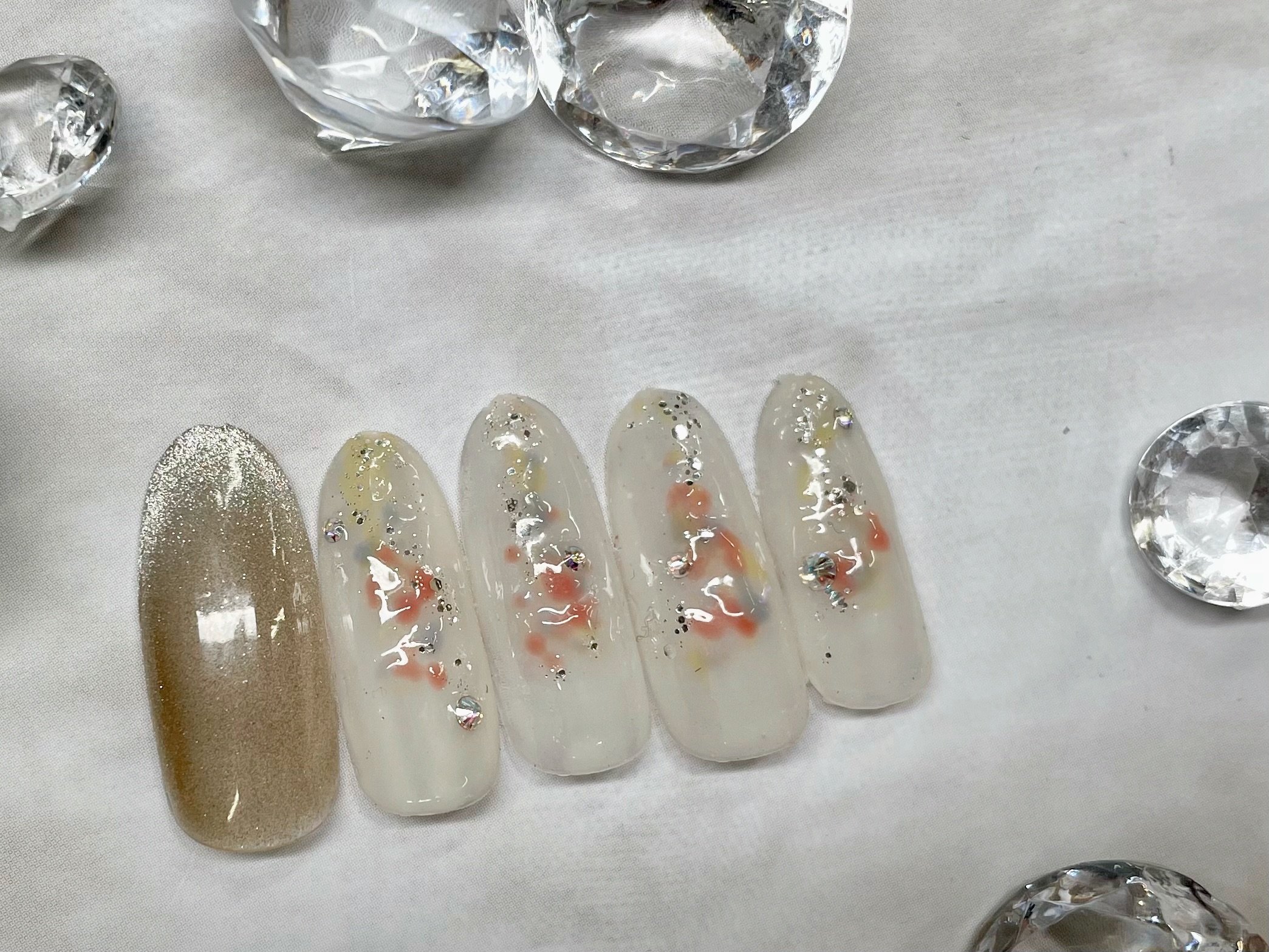 ③マグネットと、ふんわりカラフルなアートネイル♪