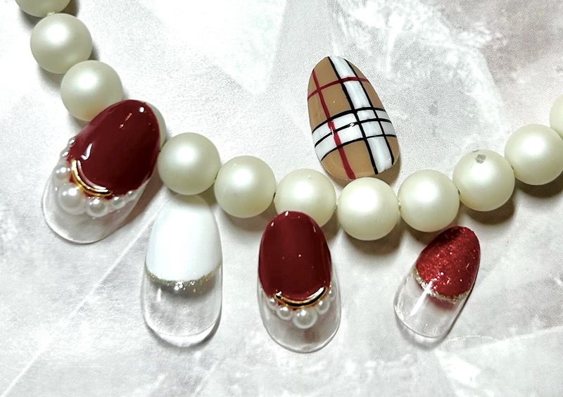 丸フレンチと合わせたチェック柄♡