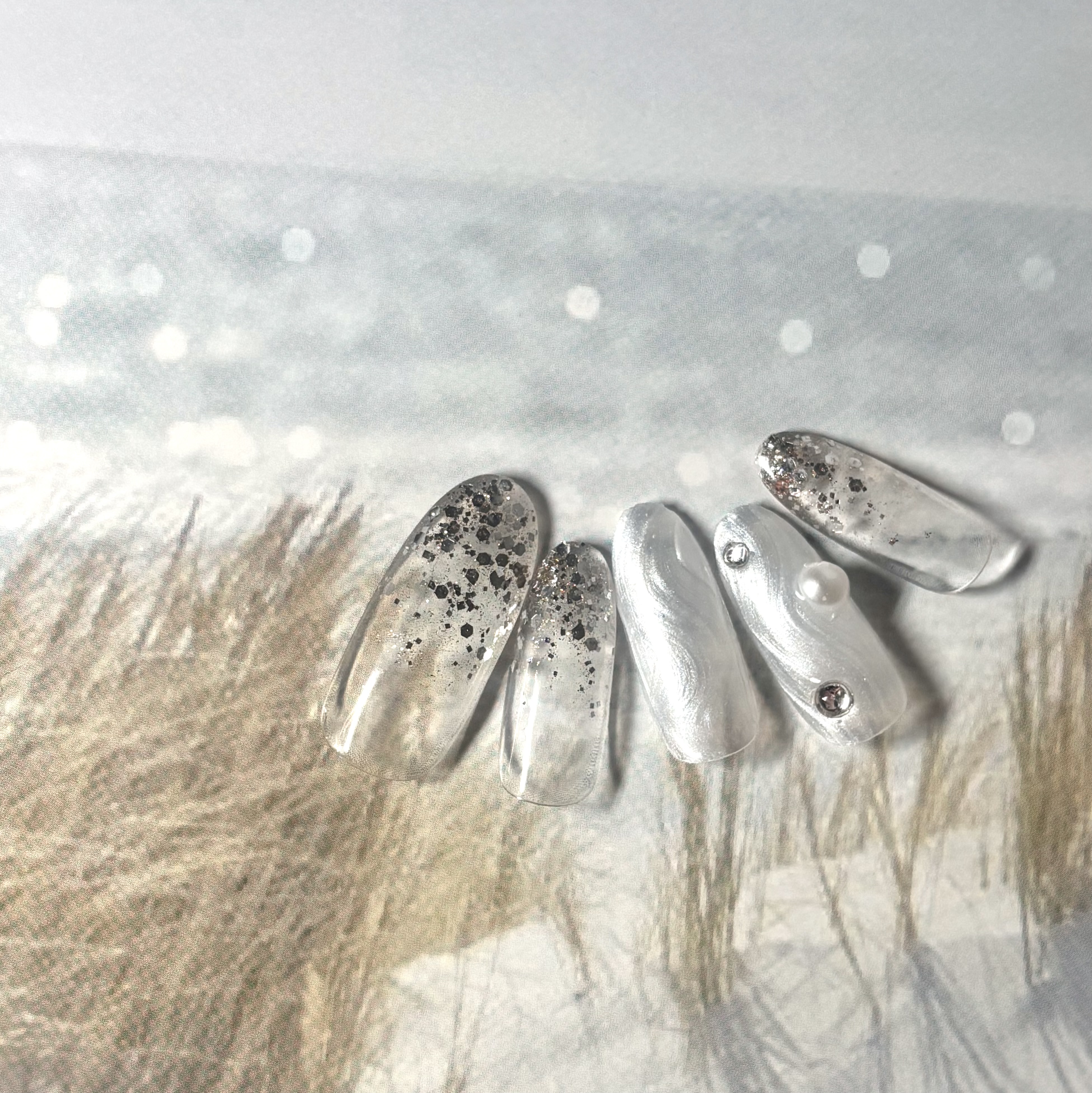 クリア感のあるラメとフィルムで夏っぽく♪