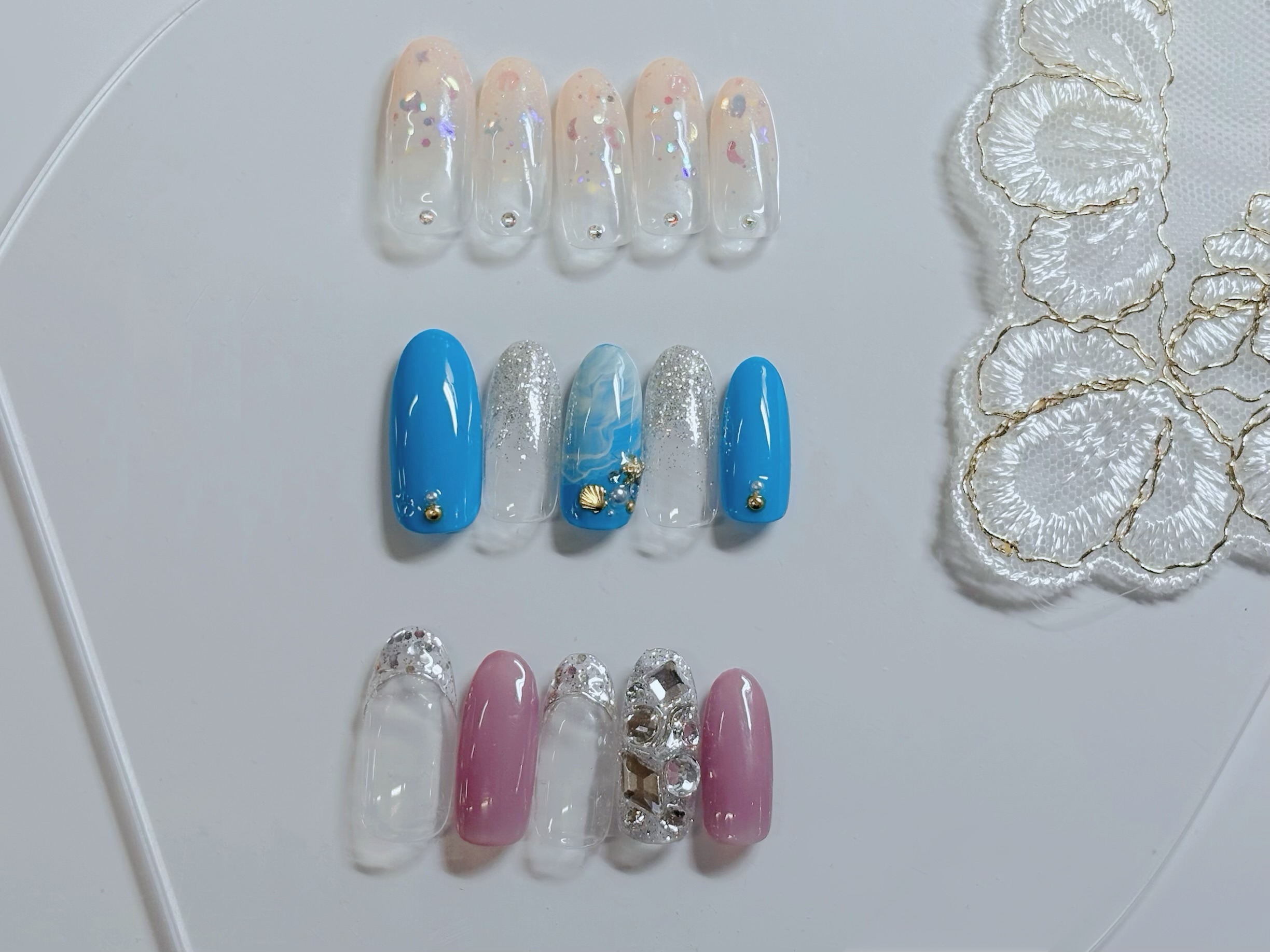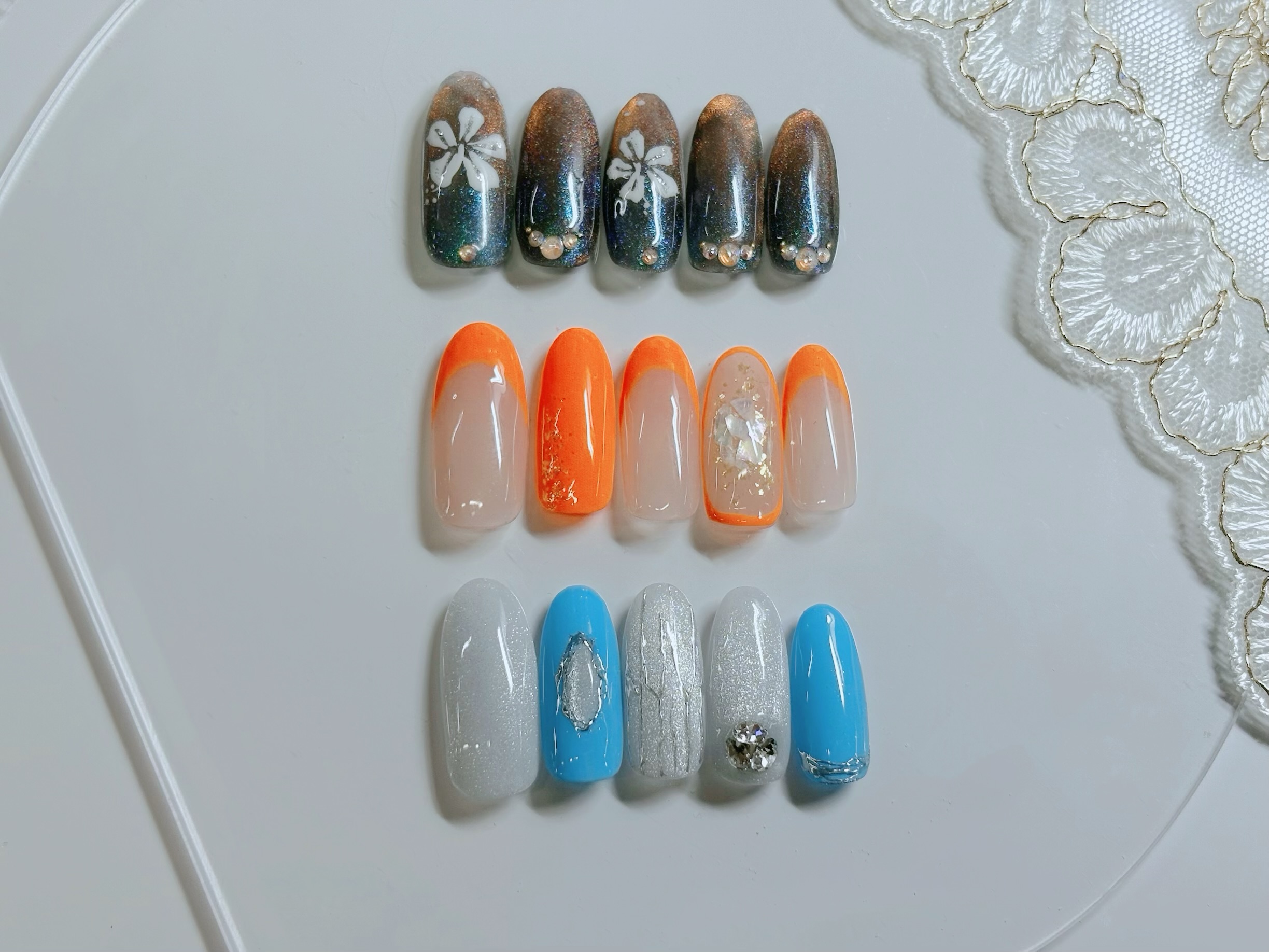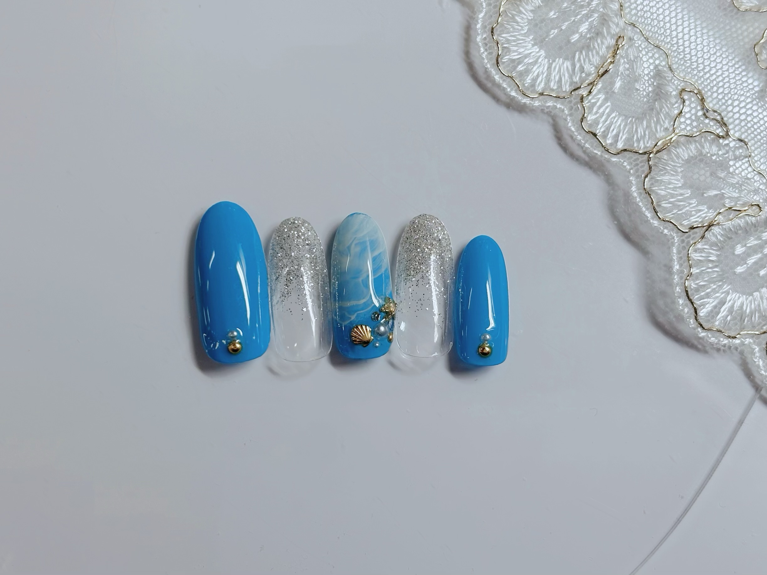 ダブルフレンチにマーブル、シェルのパーツで夏真っ盛り