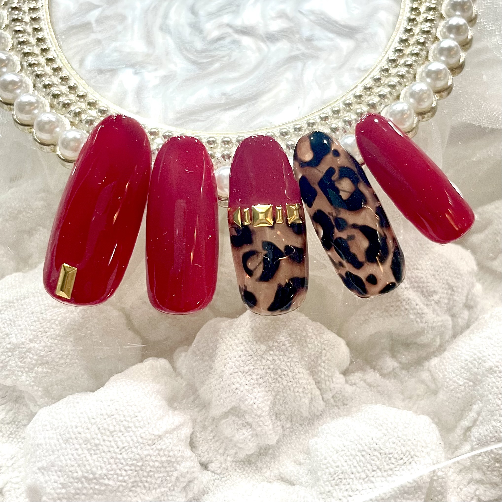 赤のワンカラーとヒョウ柄の組み合わせが素敵です