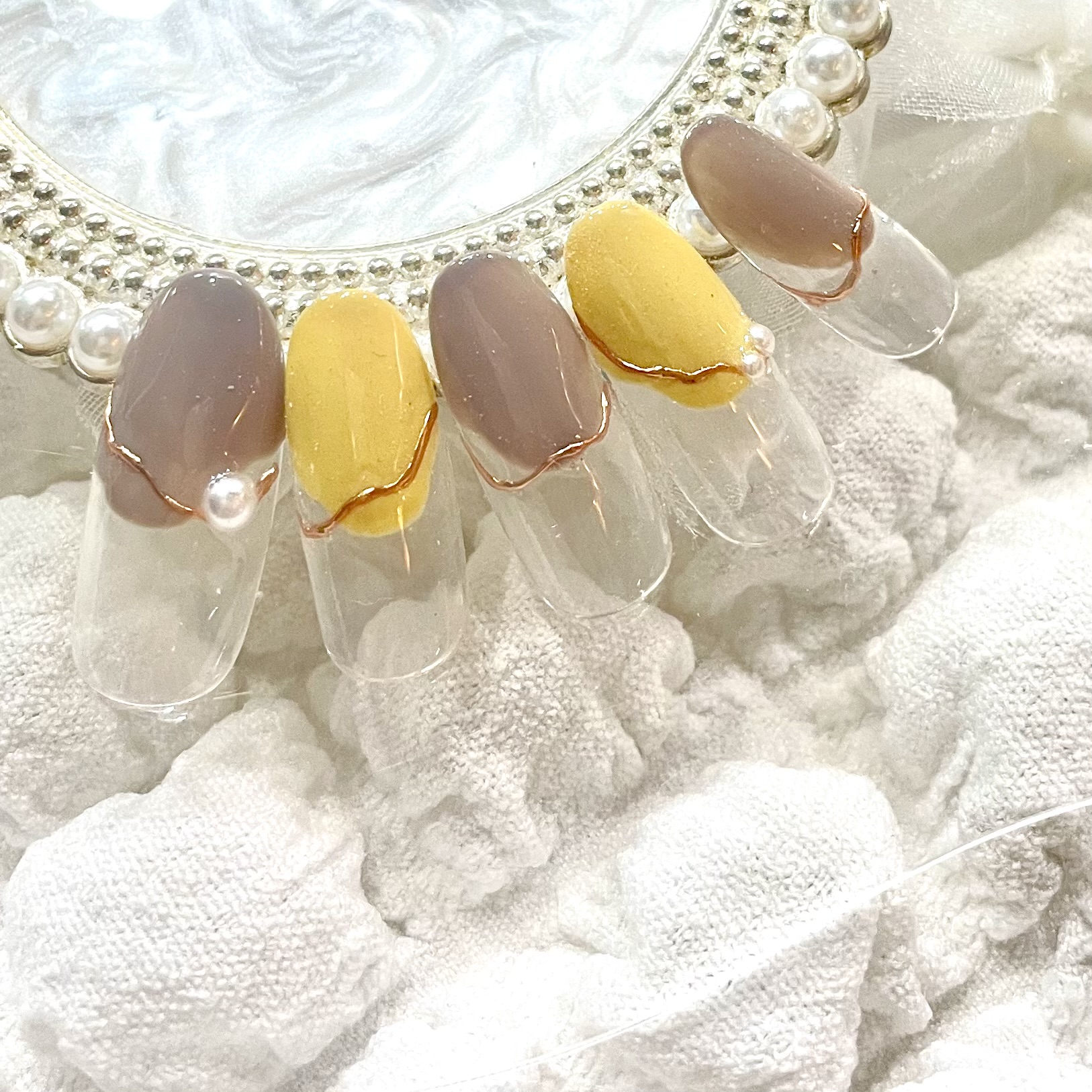 秋らしいお色味の丸フレンチネイル