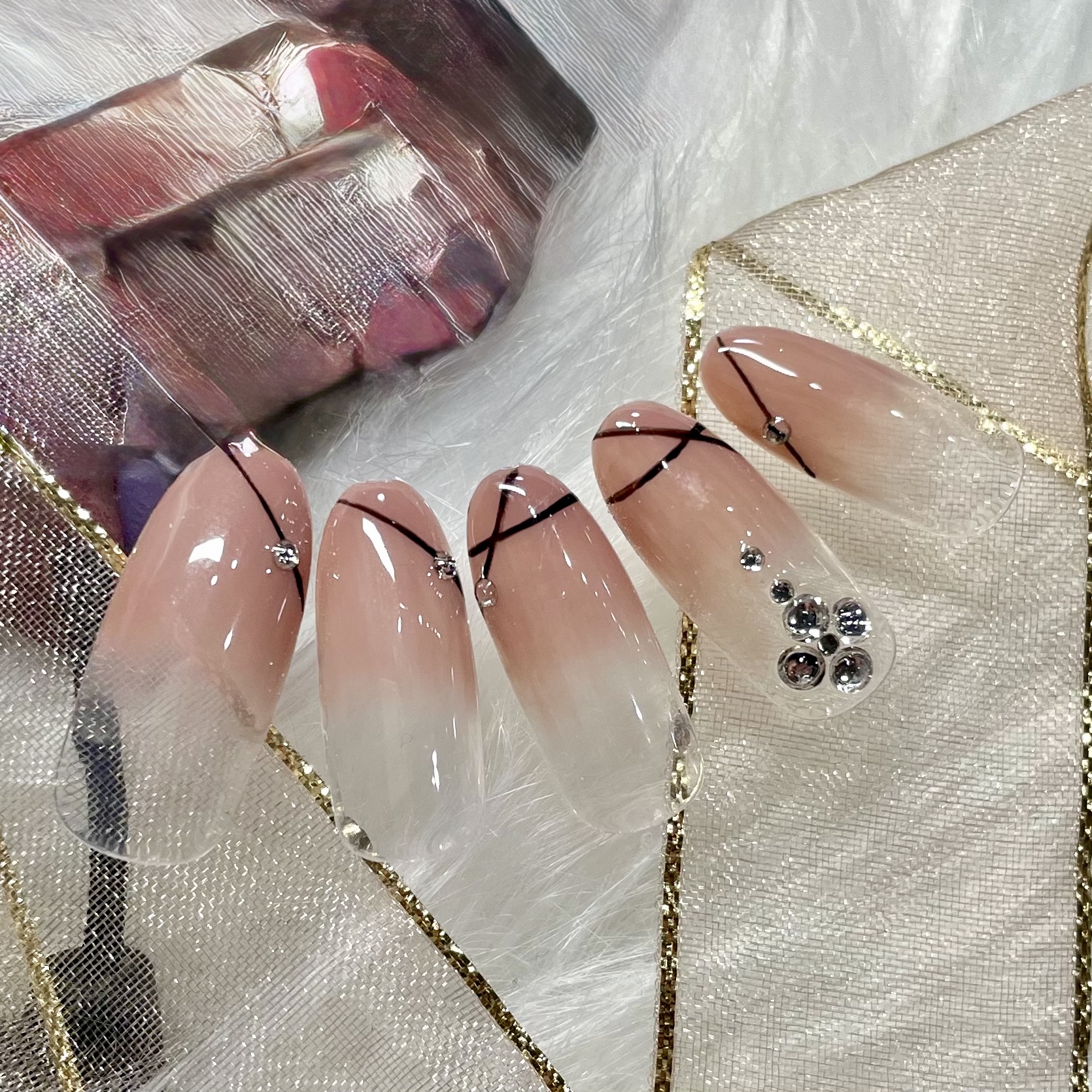 ヌーディなグラデーションのベースにブラックのラインアート★