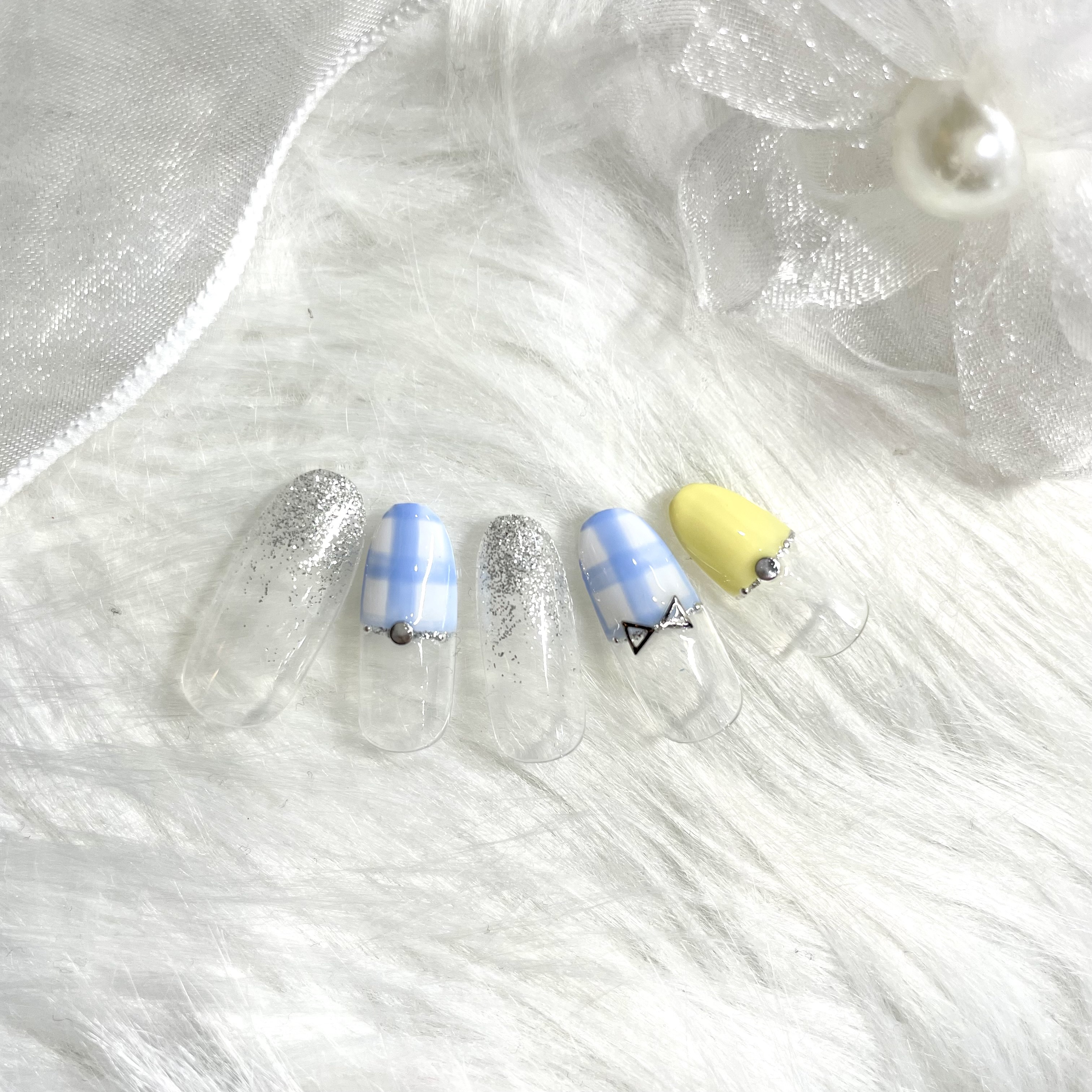 ①チェック×ラメ