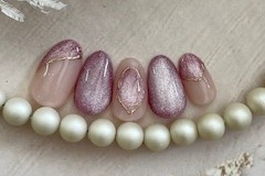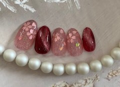 ラメカラーのピンクには桜の花びらのホログラムを使って春らしい指先に